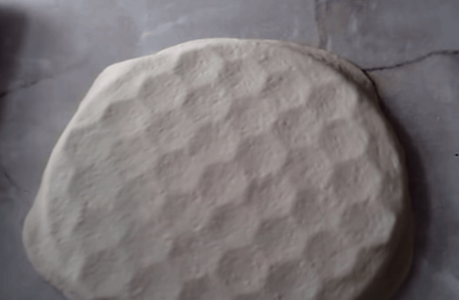 Tu jednoduše pomažete olejem a posypete moukou a zakryjete plátem vyváleného kynutého těsta. To musí být, jak už jsme se zmínili, dostatečně pružné, aby se netrhalo, ale aby se pod ním rýsovaly obrysy plastové plástve, a zároveň nelepivé, aby se dalo z formy snadno odstranit.