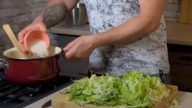 Do směsi vmíchejte také nakrájený pórek s česnekem a po minutě také neuvařenou rýži s nahrubo nakrájenou kapustou, kterou předem důkladně omyjte.