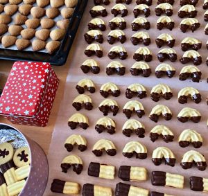 Na mlýnek na maso nasaďte nástavec na cukroví a semelte v něm těsto a nožem oddělujte kousky dlouhé okolo 5 centimetrů (popřípadě vytvářejte další různé tvary), které vyskládejte vedle sebe na plech pokrytý pečicím papírem. Cukroví vložte do trouby rozehřáté na teplotu 180 °C (nebo 160 °C s ventilátorem) a pečte je asi 8 až 10 minut. Po upečení musejí banánky zůstat světlé a křehké.