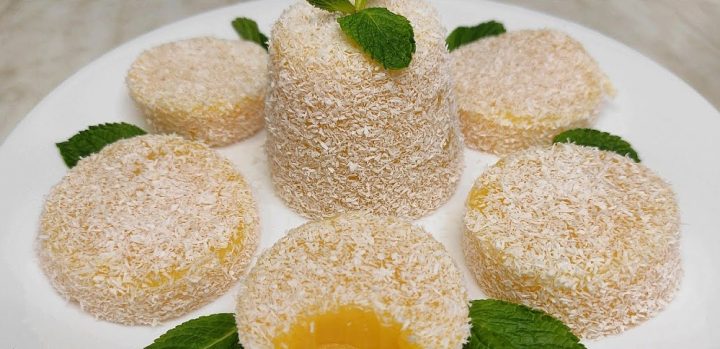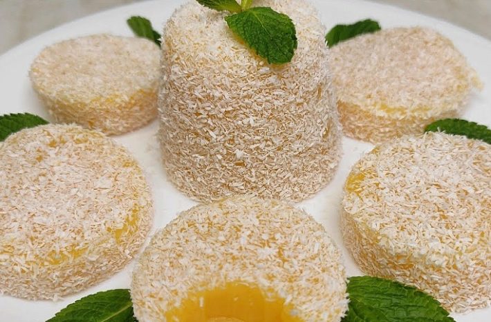Vymažte skleničky máslem a nalijte do nich směs. Zakryjte je fólií a dejte na 2 hodiny do lednice. Pak ztuhlou směs vyklepněte, obalte ji ve strouhaném kokosu a nakrájejte na kolečka asi 1,5 centimetru silná. V místě řezu je také obalte v kokosu a servírujte.