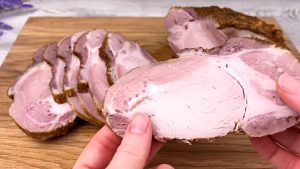 Po vytažení z lednice je šunka hotová. Nyní už ji stačí pouze nakrájet na tenké plátky a pochutnat si na ní třeba s čerstvým pečivem a nakládanou zeleninou.