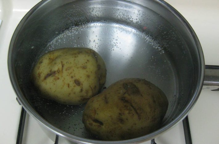 Brambory dejte uvařit ve slupce den předem. Když změknou, důsledně je slijte od veškeré přebytečné vody a nechte je úplně vychladnout přes noc. To je důležité proto, abyste zabránili přítomnosti přebytečné vody, která by narušila soudržnost těsta a jednak aby bylo možné s těstem snadno pracovat.