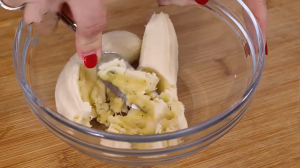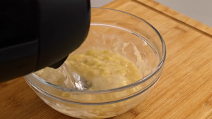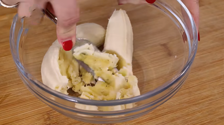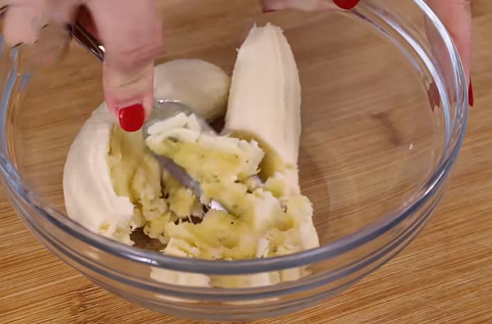 Nejprve si oloupejte jeden zralý banán. Nemusí být zcela černý, ale určitě by neměl být ještě zelený. Čím je banán zralejší, tím více účinných látek bude obsahovat. Banán si rozdělte na menší kousky a dejte je do misky. Vezměte si vidličku a pomocí ní banán rozmačkejte na kaši. Nevadí, pokud v ní zůstanou menší kousky. Poté banánovou směs zalijte 200 ml vroucí vody. Směs dobře promíchejte a nechejte při pokojové teplotě stát přibližně 15 minut.