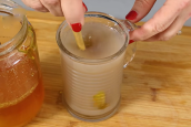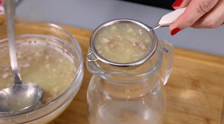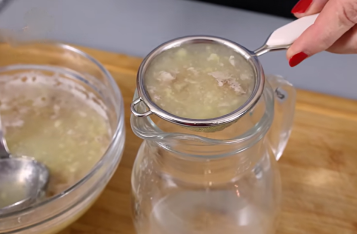 Po čtvrt hodině je načase směs přecedit. Zvolte si jemné sítko, přes které tekutinu přelijete. Budete potřebovat pouze přeceděnou vodu, zbytky banánu dejte bokem a poté je zlikvidujte. Nejlepší bude, pokud je můžete dát třeba na kompost nebo někam, kde se ekologicky rozloží. Zůstane vám hotový nápoj, který bude mít béžovou, zakalenou barvu. Nápoj přelijte do vhodné sklenice a přidejte lžíci medu na dochucení. Takto je nápoj hotový.