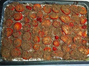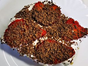Po dopečení nechte buchtu úplně vychladnout. Poté vyšlehejte 3 zakysané smetany s vanilkovým cukrem a tuto směs rozprostřete na pudinkovou vrstvu zchladlého koláče. Navrch položte plátky jahod nebo jiné oblíbené ovoce a zasypejte je strouhanou čokoládou. Hotový dezert nakrájejte na porce a s velikou chutí a šálkem dobrého čaje nebo kávy podávejte.