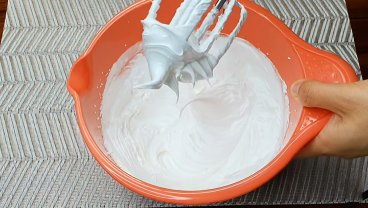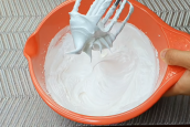 Dezert bez mouky? Základem tohoto receptu jsou bílky, které vlijte do misky a pomocí ručního mixéru ušlehejte na sníh, během šlehání přisypejte kyselinu citronovou. Mixujte dále a přisypejte cukr. Šlehejte, dokud nevznikne opravdu velmi hutná směs. Tuhý sníh by měl zůstávat na šlehacích metličkách a měl by držet tvar.