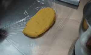 Pokračujte ve šlehání a když se žloutky opět úplně zapracují do směsi, přidejte také hladkou mouku, kterou jste předtím proseli přes jemné sítko, abyste ji zbavili případných hrudek. Míchejte těsto tak dlouho, dokud nezačne držet pohromadě a přestane se lepit na stěny mísy. V tu chvíli vypněte robot, těsto položte na kus přilnavé fólie a roztáhněte ho do placky. Tu obalte fólií a vložte do lednice na 30 minut vychladit.