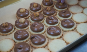 Křehké kulaté sušenky s báječným nugátem, praženým lískovým oříškem a přelité čokoládovou polevou se stanou vaší chloubou vánočního pečení. Jsou neuvěřitelně snadné a rychlé na přípravu, na první pohled tak ale vůbec nevypadají. Když je posypete nějakým pěkným cukrářským zdobením, budou vypadat jako z dílny profesionála.