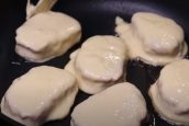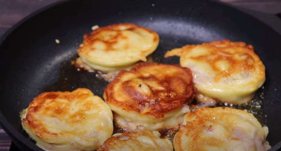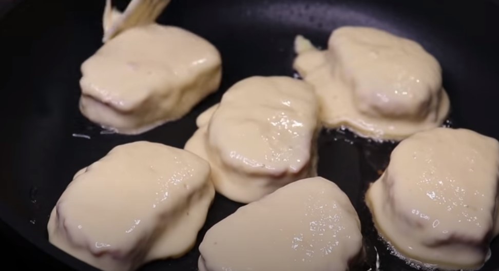V tom pak obalte každý plátek rolády a na rozpálené pánvi je osmažte z obou stran dozlatova pod pokličkou, aby se maso uvnitř uvařilo. Po dosmažení nechte roládky okapat od zbytkového oleje a podávejte.