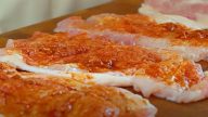 Maso jemně naklepejte a potřete marinádou z obou stran. Poté ho vložte do misky, přikryjte potravinovou fólií a nechte ho 15 minut odpočívat.