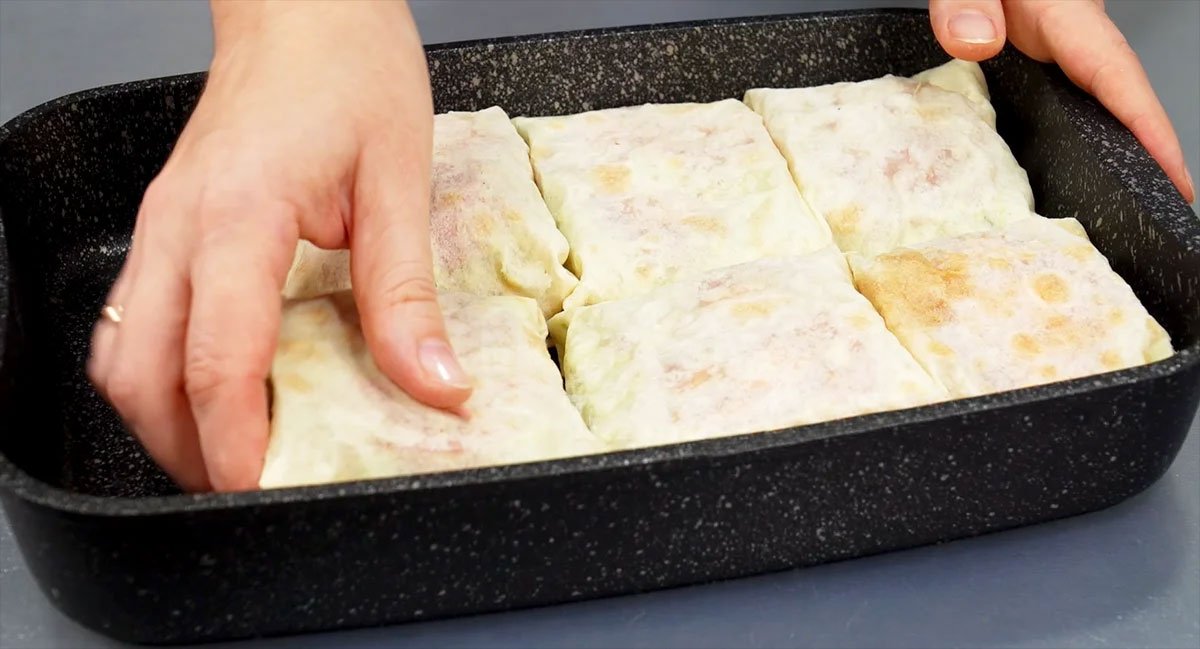 Zabalte rybu do obálky z pita chleba a dejte všechny do plechu. Poté smíchejte zakysanou smetanu se strouhaným sýrem a špetkou soli, namažte ji na vršek pita chleba a dejte do trouby na 35 minut při teplotě 180 stupňů.