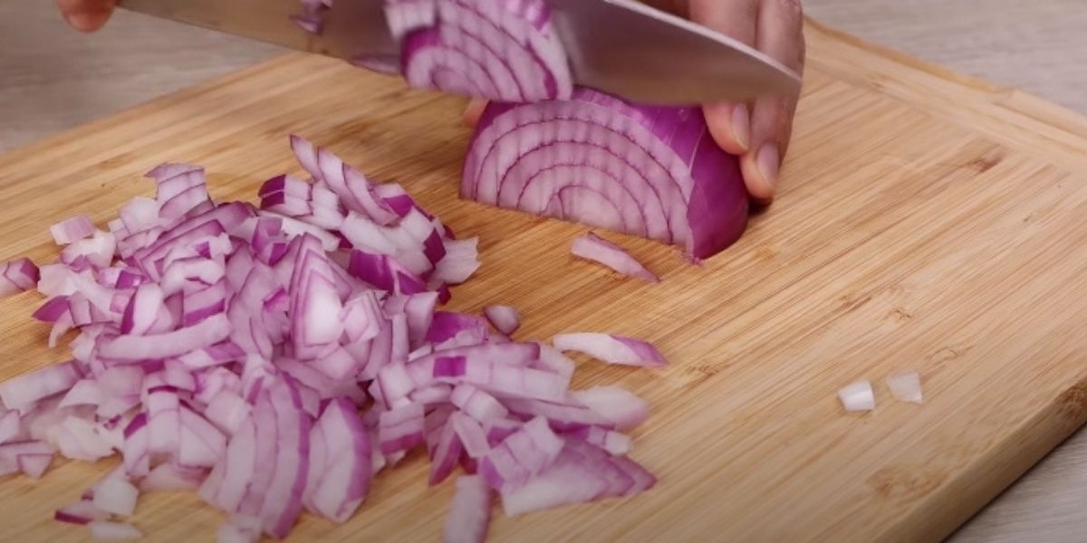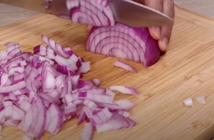 Cibuli oloupejte a nakrájejte ji na jemné kostičky.