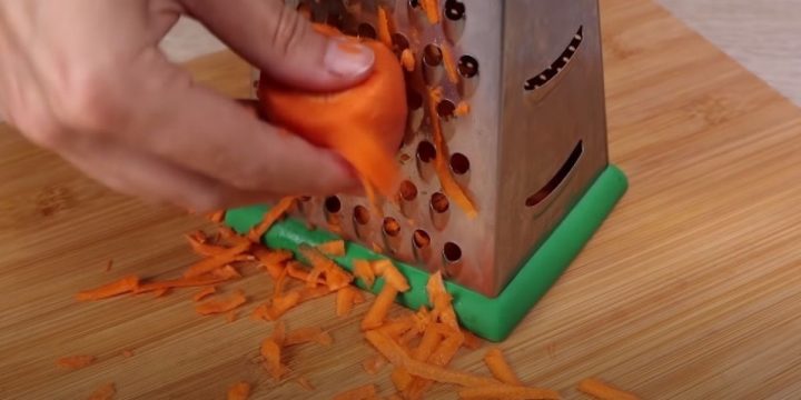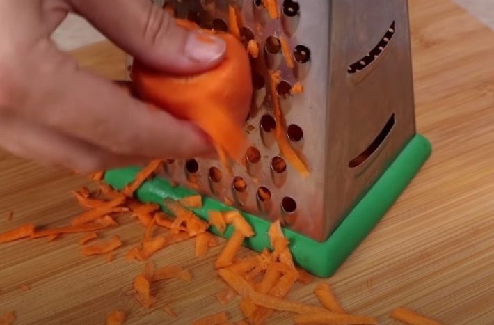 Mrkev v případě potřeby očistěte a nastrouhejte na hrubém struhadle.