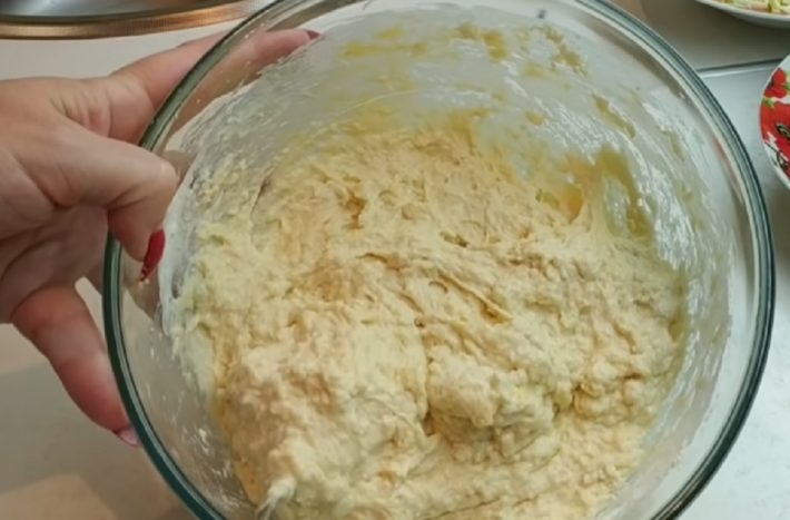 Připravte si hlubokou mísu, ve které budete připravovat těsto. Kefír smíchejte s jedlou sodou. Přidejte tuto směs do mísy s prosátou moukou. Trochu vše promíchejte. Přidejte sůl, cukr a lehce rozšlehaná vejce. Důkladně promíchejte, aby se všechny ingredience nádherně spojily. V této chvíli již máte těsto připravené a můžete přejít k jeho pečení a dodělání pizzy.