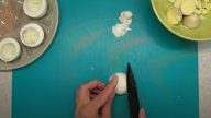 Tip: Aby se bílky po talíři nekutálely, seřízněte jim špičku.
