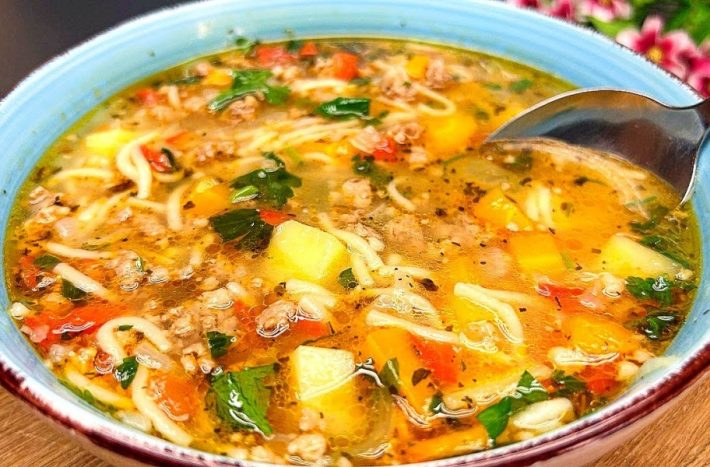 Chutnou a zdravou polévku připravíte během pár chvil i s minimem základních surovin. Vyzkoušejte tento recept se zeleninou a mletým masem, který vám určitě zachutná a zvládne jej i začátečník.