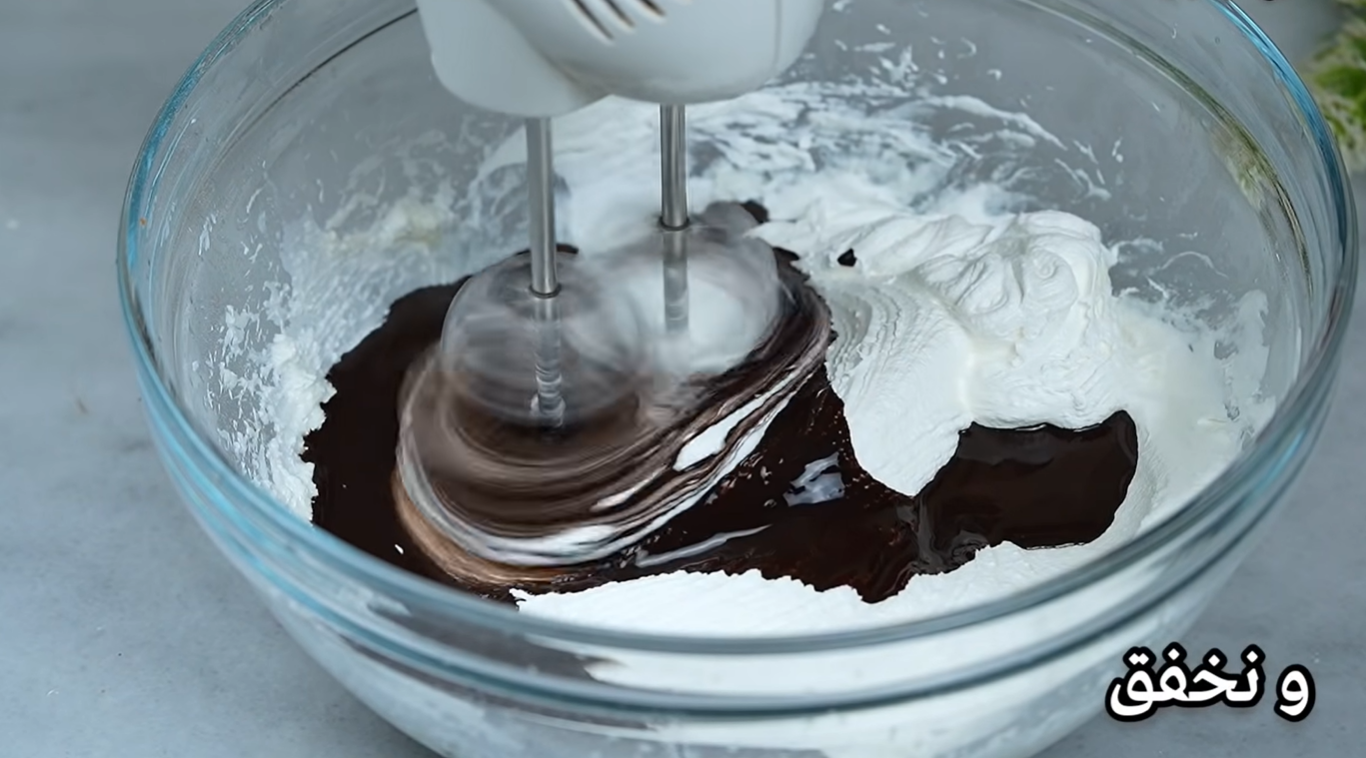 V jiné míse smíchejte jeden hrnek studené vody s jedním hrnkem sušené smetany a elektrickým šlehačem vyšlehejte do hustého krému. K němu pak přilijte rozpuštěné kakao a znovu promixujte, abyste získali pevnou kakaovou šlehačku.