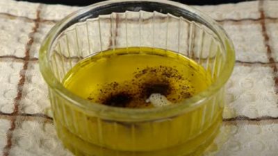 V samostatné misce smíchejte olivový olej s citronovou šťávou, medem, pepřem a solí.