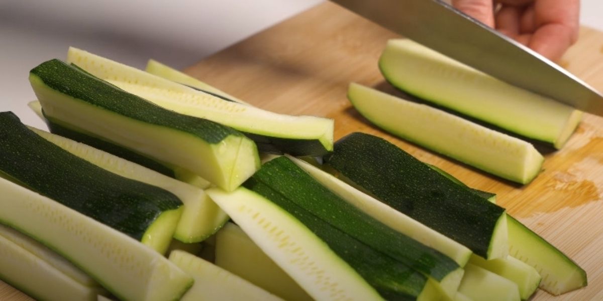 Příprava cuketového salátu není vůbec složitá a zabere vám zhruba 15 minut. Vezměte jeden kilogram cukety a nakrájejte ji na tyčinky.