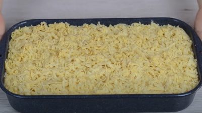Rychlý jogurtový koláč posypte nahrubo nastrouhaným těstem z mrazáku a pečte ho v předehřáté troubě na 180 °C po dobu 45 minut. Po vychladnutí dezert servírujte posypaný moučkovým cukrem a nakrájený na kousky.