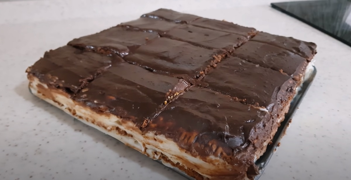 Rychlý nepečený dort s vařeným krémem a čokoládovou polevou