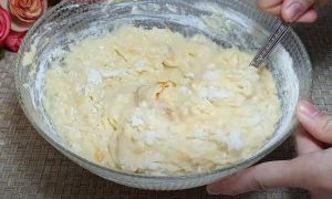 Do zadělávací mísy nalijte kefír, přidejte k němu libovolnou marmeládu a lžičku vanilkového cukru. Poté vše dobře promíchejte. Do směsi rozklepněte dvě vejce, přilijte olej a opět promíchejte. Nakonec přidejte prosátou hladkou mouku s práškem do pečiva a promíchejte. Můžete samozřejmě použít elektrický šlehač.