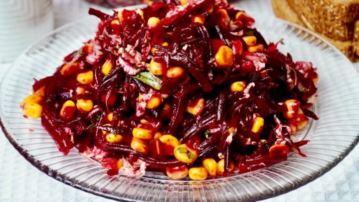 Rychlý zdravý salát z červené řepy a kukuřice - postup přípravy