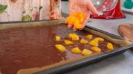 Samotná příprava dezertu už je snadná. Základem je plech vyložený pečicím papírem, na který se položí vyválené těsto, do obdélníkového tvaru. Poté přichází na řadu vkládání náplní. Po lžících se na střídačku umístí vždy lžíce tvarohové náplně a lžíce jablečné náplně. Právě tato kombinace bude na moučníku připomínat šachovnici.