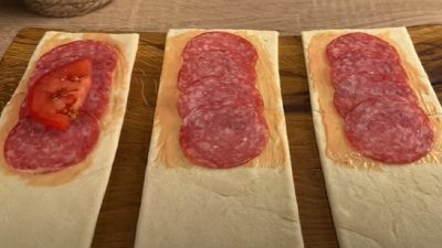 Vyzkoušejte salámové taštičky se sýrem, plné rozmanitých ingrediencí. Jsou ideální, jako rychlá a sytá svačinka a ocení je všichni milovníci rychlých a snadných pokrmů.