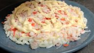 Salát s krabími tyčinkami a cibulí - postup přípravy