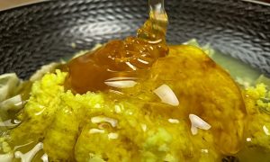 Druhý citrón rozkrojte a vymačkejte z něho všechnu šťávu. Nalijte ji do mísy k ingrediencím, přidejte med a vše dobře rozmíchejte.