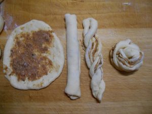 Během kynutí si pomelte škvarky. Vykynuté těsto si vyklopte na pomoučněný vál a rozdělte na 15 stejných dílů. Z každého dílu udělejte placku. Tu pomažte mletými škvarky a dle chuti posolte. Placku srolujte do ruličky. To pak podélně nožem rozříznete napůl. Oba pruhy zapleťte do copu a pak je stočte do klubíčka tak, aby konce byly vespod.