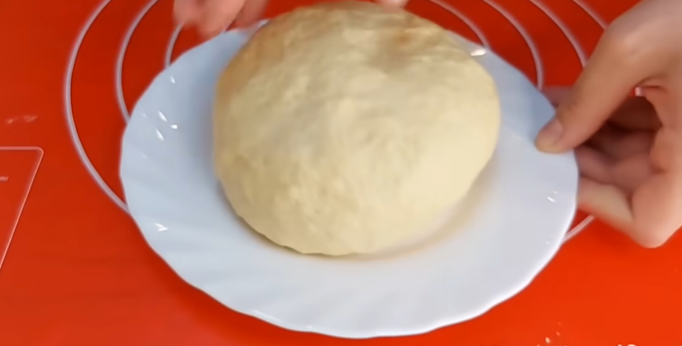 Když získáte soudržnou hmotu, vyhoďte ji na pomoučněnou pracovní plochu a ručně hněťte, dokud nezískáte pružné, pevné a nelepivé těsto. Zformujte z něho kouli, vložte ji na talířek, zakryjte jej potravinářskou fólií a čistou bavlněnou utěrkou a nechte v teple kynout asi 10 minut.