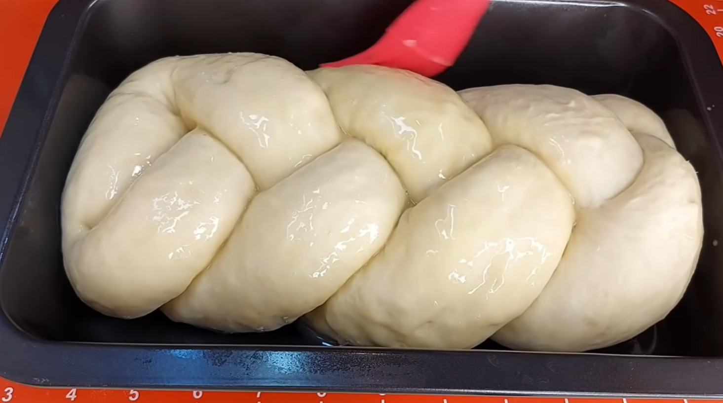 Dostatečně velký plech vymažte rostlinným olejem a položte na něj pletenec. Zakryjte ho fólií a utěrkou a nechte 30 až 40 minut odstát a vykynout.