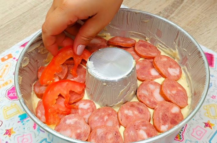 Slaná bábovka plněná pepperoni, mozzarellou a rajčaty - postup přípravy