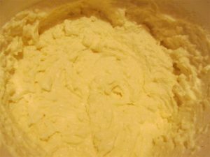Na začátku si připravíme náplň. Nachystejte si měkký sýr, který máte rádi. Smíchejte ho s měkkým máslem a poté přidejte zakysanou smetanu a vše důkladně promíchejte. Získáte jemnou směs, se kterou budete moci následně pracovat. Nakonec vložte hotový krém do lednice, aby zhoustnul.