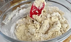 Nakonec přisypejte hladkou mouku a s pomocí lžíce ji zapracujte do směsi, abyste vytvořili hutné a lepivé těsto. Poté pokračujte v hnětení ručně asi 4 až 5 minut, dokud těsto nezíská plastickou, vláčnou a nelepivou konzistenci. Z těsta zformujte bochánek a v zakryté míse ho nechte 30 minut odležet a kynout.