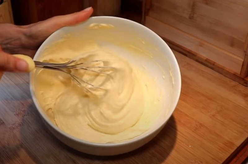 Do velké mísy si prosejte hladkou mouku a kypřící prášek do pečiva. Poté přidejte zakysanou smetanu, dvě vejce a mléko. Vypracujte tekutější těstíčko, které se bude podobat tomu palačinkovému.