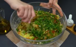 Do mísy si rozklepněte vejce, přidejte olivový olej a vyšlehejte do pěny. Poté přidejte hladkou mouku a prášek do pečiva a vymíchejte těsto. Z cukety vymačkejte co nejvíce vody a přidejte ji k těstu. Brambory sceďte a také je přidejte do mísy. Pak si nasekejte najemno petržel a mladou zelenou cibulku nebo pažitku a také je přidejte do mísy. Vše pečlivě promíchejte a dle chuti dosolte, opepřete a přidejte půl lžičky sladké papriky.
