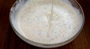 Do větší misky dejte majonézu, jogurt, cukr, sušenou petrželku a ocet. Omáčku ještě okořeňte solí a pepřem a důkladně ji promíchejte. Skladujte ji v lednici, dokud nebudete pokrm podávat. Jakmile je rýže s masem a zeleninou hotová, můžete jídlo servírovat, dobrou chuť!