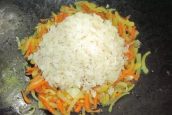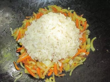 Rýži vložte do osolené vody a uvařte ji do poloměkka. Pokud chcete, můžete ji namísto vaření podusit, podle toho, na co jste zvyklí a čemu dáváte přednost. Rýži byste měli připravovat zhruba 10 minut.