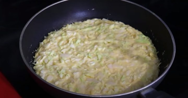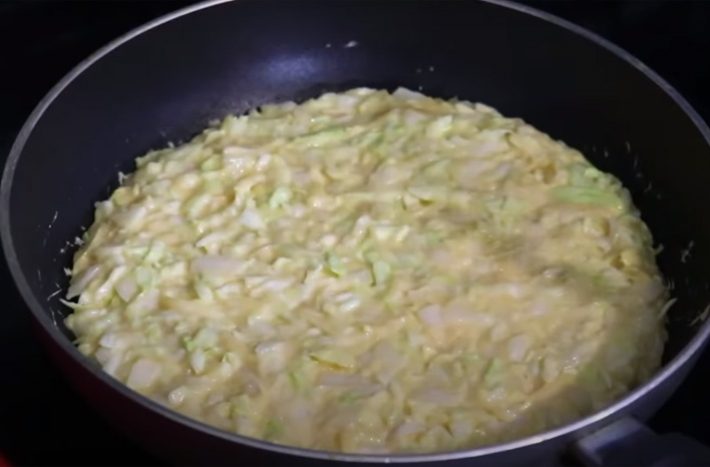 Smažená zelná omeleta se sýrem - postup přípravy
