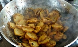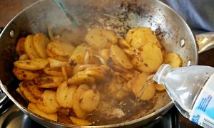 Když jsou brambory příjemně zlatavé, ještě trochu je posypejte solí, případně pepřem a petrželkou a opatrně promíchejte, abyste neponičili uvařené okraje. Podlijte je kapkou vody, stačí asi 3 až 4 lžíce, a nechte je dusit doměkka.