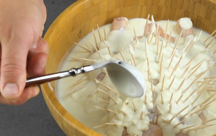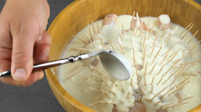 Poté vyjměte kuře z marinády, odstraňte z něj párátka a nechte ho úplně vychladnout.