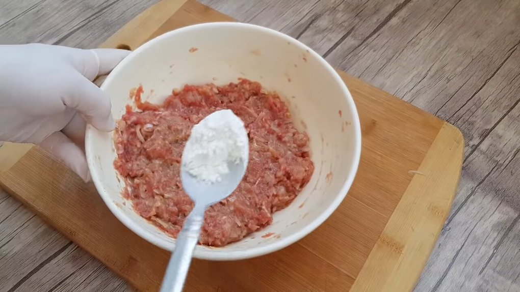 Oloupejte cibuli a česnek a obojí nasekejte na jemné kousky. Spolu s mletým masem pak oba druhy zeleniny vložte do hluboké mísy, přidejte jedno vajíčko, mletá semena koriandru, kmín, pepř a sůl a zahustěte dvěma nebo třemi lžícemi mouky. Důkladně promíchejte, abyste vytvořili jednolitou hmotu.