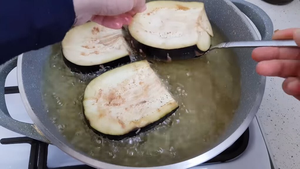 Na kamnech rozehřejte kastrůlek s vysokou vrstvou oleje a vložte do něj lilky smažit z obou stran, dokud maso i lilek krásně nezezlátnou.