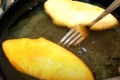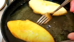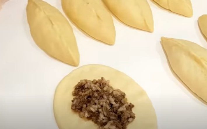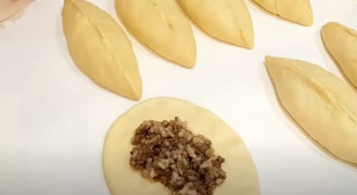 Rýži uvařte v osolené vodě a smíchejte ji s masem. Vychladnuté těsto rozdělte na několik částí. Každou vyválejte, naplňte masovou směsí a zabalte. Rozehřejte rostlinný olej a každý kousek v něm postupně osmažte. Poté ihned podávejte, dobrou chuť!