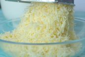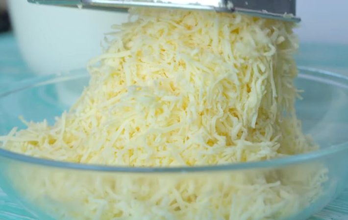 Na jemném struhadle nastrouhejte sýr. Měl by být kvalitní a polotvrdý, nejlépe vysokoprocentní eidam nebo nějaký podobný. Záleží čistě na vašich chutích a preferencích.