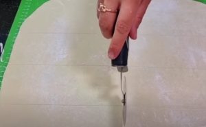 V míse si smíchejte mouku a sůl. Následně přilijte horkou vodu a olej a zpracujte hladké těsto. Zabalte ho do fólie a nechte 15 minut odpočnout. Těsto poté rozdělte na 2 části. Z jednoho vyválejte obdélníkovou placku a naznačte na ní čtverce o hraně 6 až 8 centimetrů, velikost je na vás.