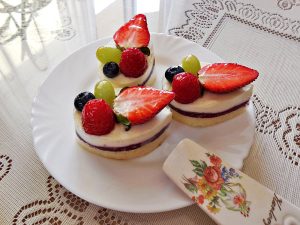 2. Ihned a bez čekání (ztužovač pracuje rychle) rozetřete krém na vrstvu ovocného krému na dortících, povrch krému vyrovnejte do roviny a semifreda vložte ztuhnout do lednice alespoň na 2 hodiny (anebo třeba přes noc). Hotová semifreda ozdobte podle chuti a fantazie třeba čerstvým ovocem a želatinou, anebo třeba čokoládovými filigrány či jiným zdobením.